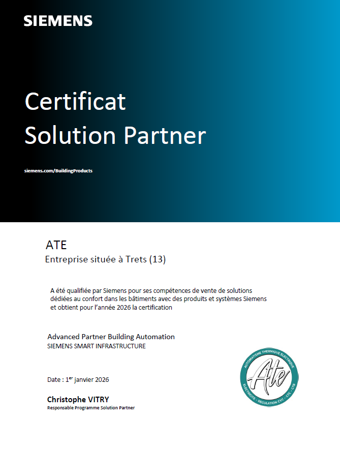 Ces connaissances validées appuyées par une relation de travail étroite avec les experts techniques de Siemens France permettent à la société Automatisme Thermique Électrique de fournir des solutions de haute qualité de manière constante dans notre domaine d’expertise.